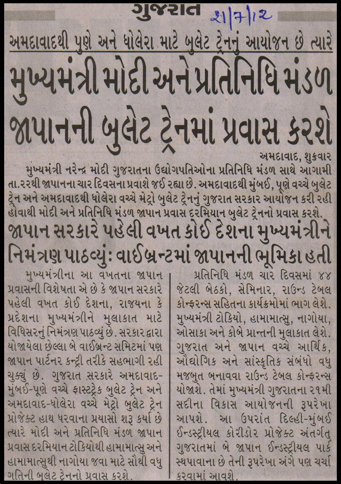 C.M. MODI FEELS JAPAN’S BULLET TRAIN, EMPHASISES THE SAME OUTLOOK FOR INDIA TO INCREASE ITS DEVELOPMENT