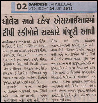 STATE GOVT. TO SOON DECLARE FOR TOWN PLANNING OF DHOLERA S.I.R.