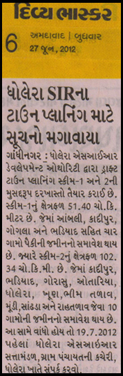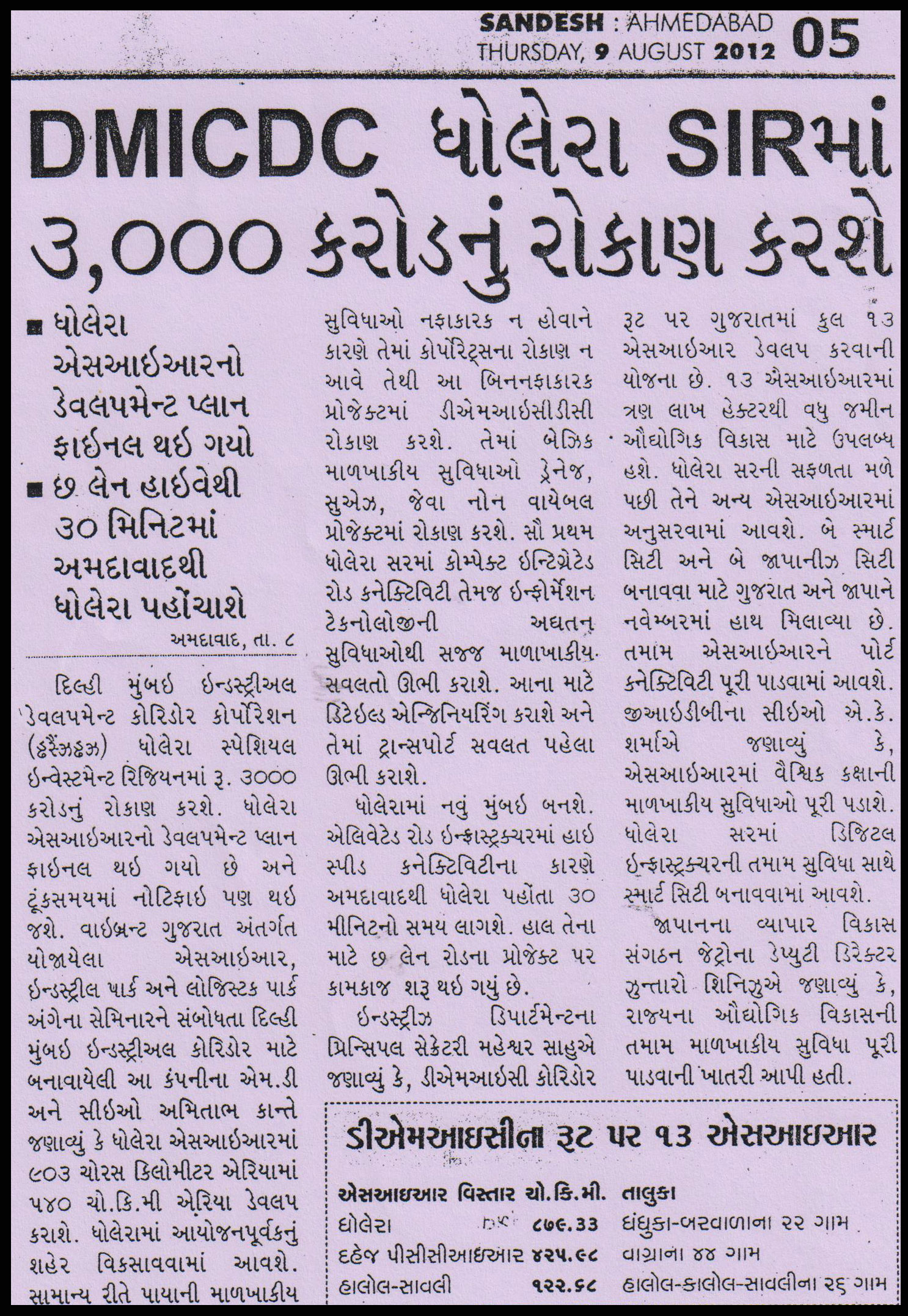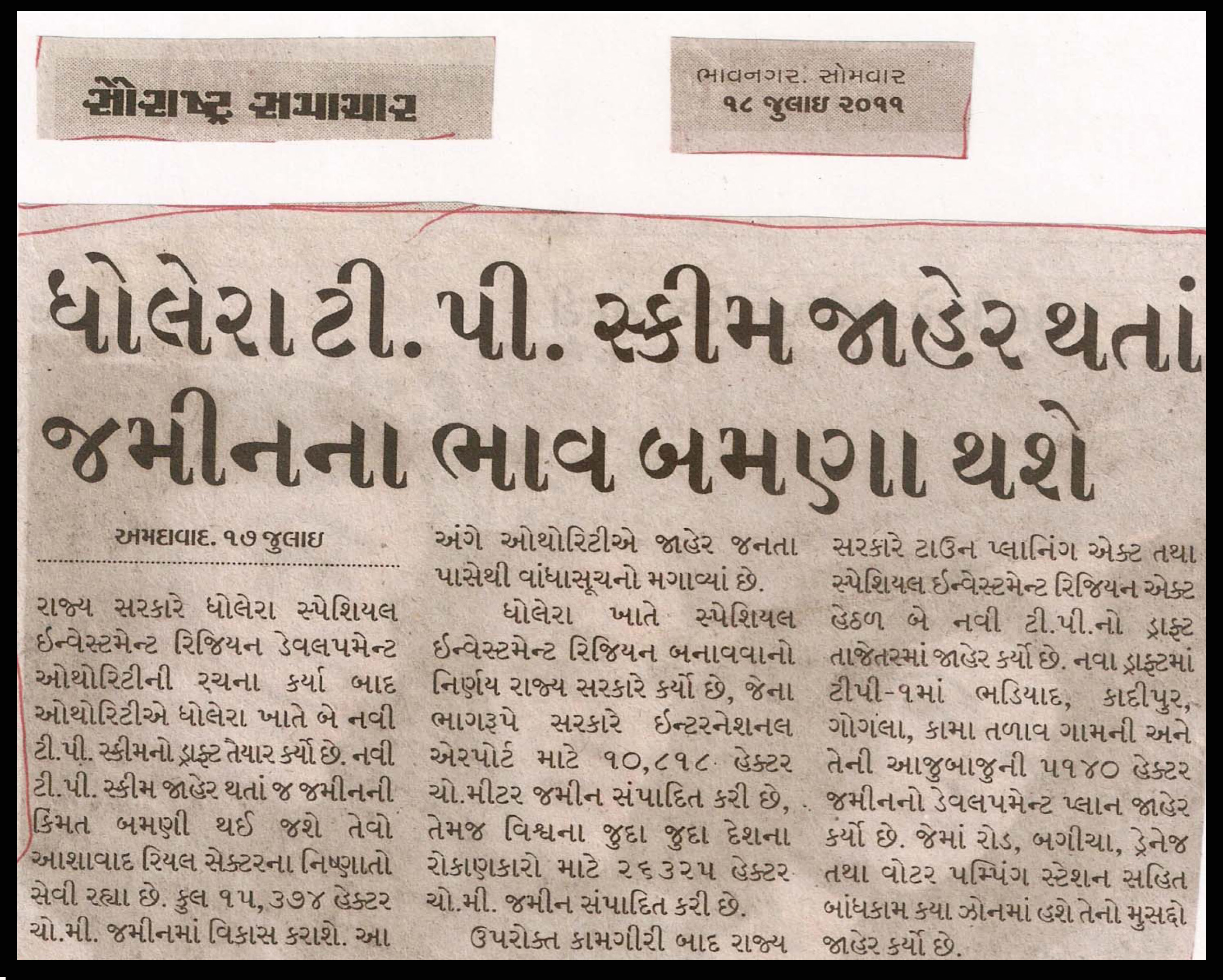 STATE GOVT. TO SOON DECLARE FOR TOWN PLANNING OF DHOLERA S.I.R.