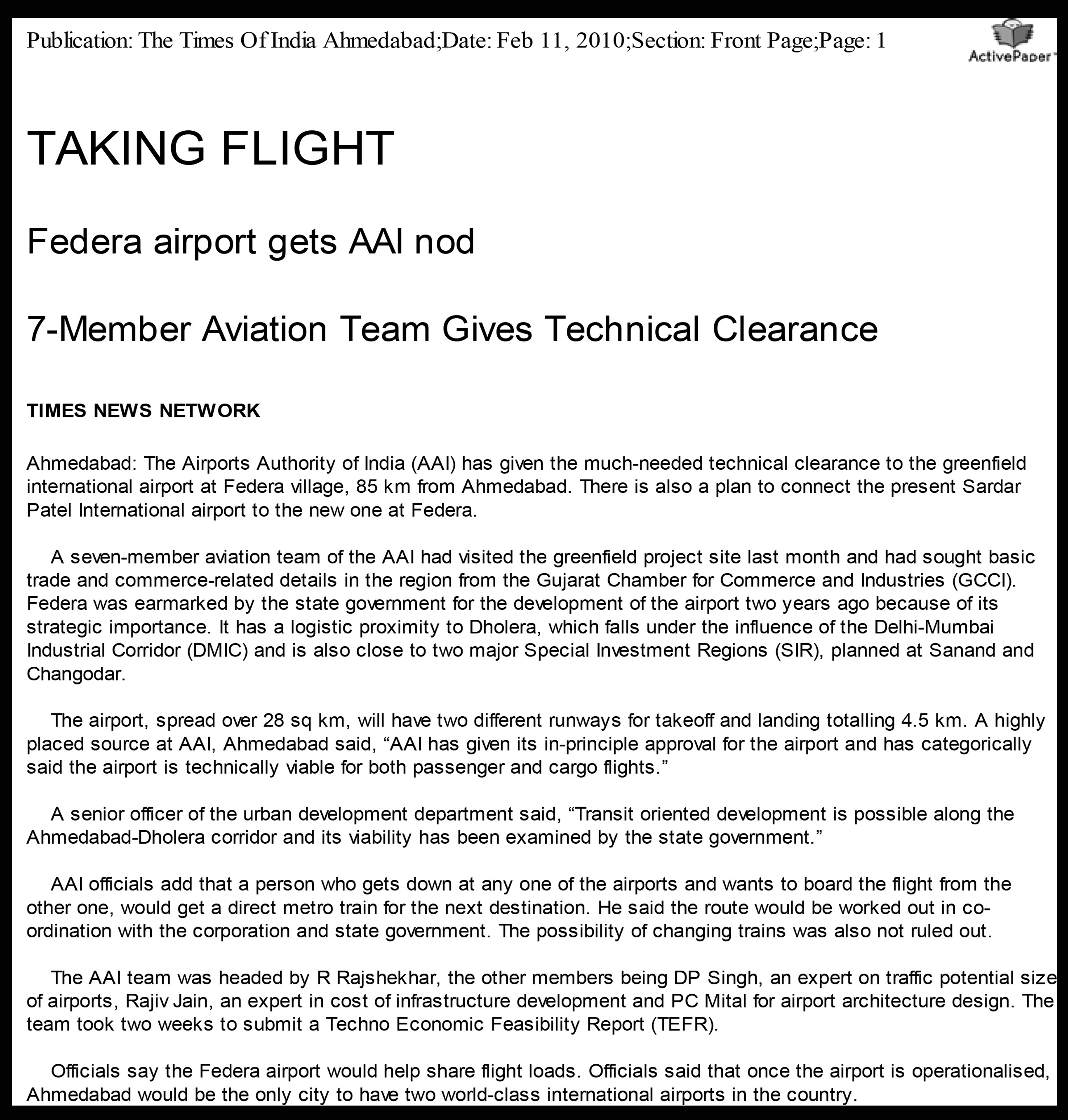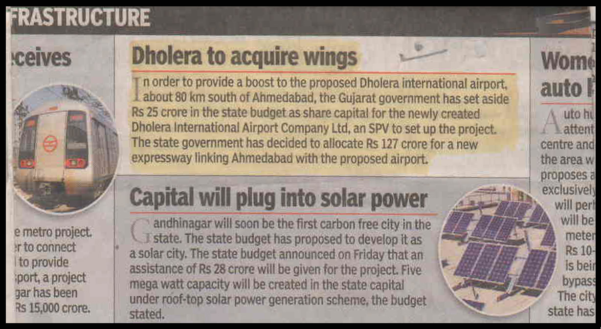 WITH THE GOVT. GIVING CLREANCES, DHOLERA TO ACQUIRE WINGS.