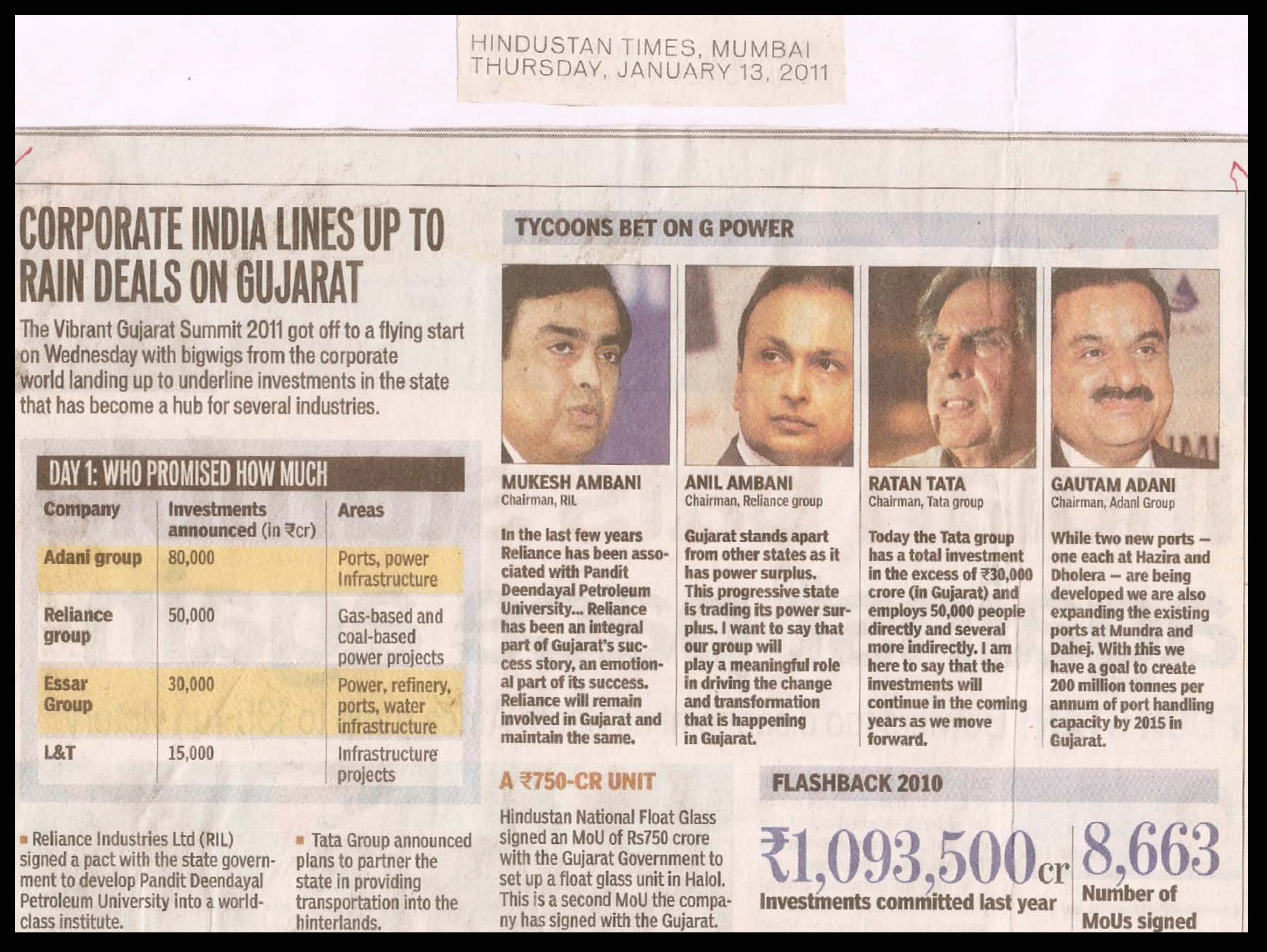 CORPORATE INDIA LINES UP TO RAIN DEALS ON GUJARAT