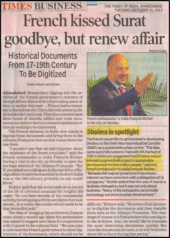 FRENCH KISSED SURAT GOODBYE, BUT RENEW AFFAIR WITH INVESTMENTS IN DHOLERA FOR SETTING UP INDUSTRIES.