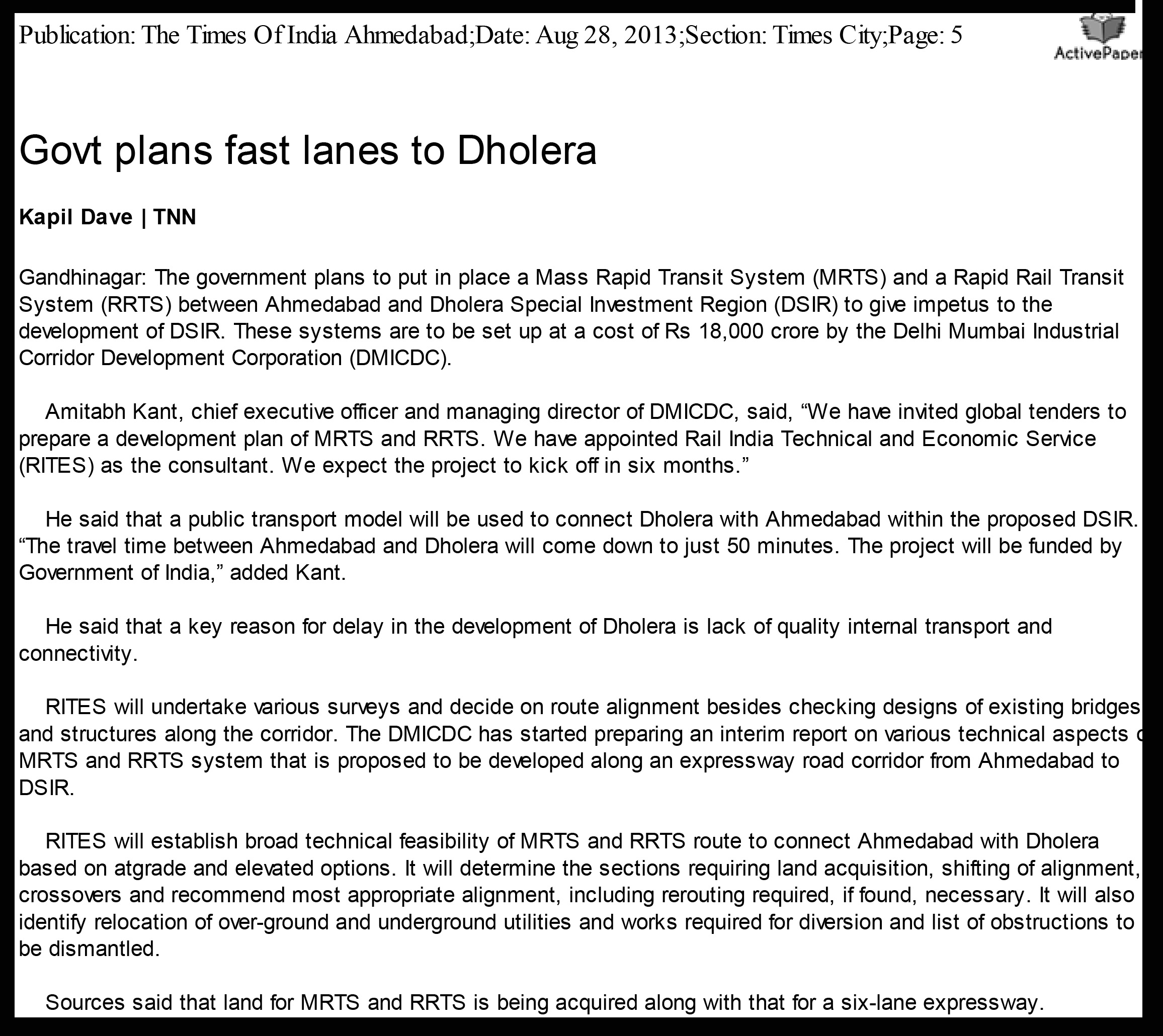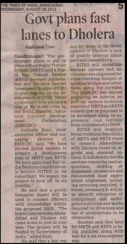GOVT. PLANS FAST LANES TO DHOLERA.