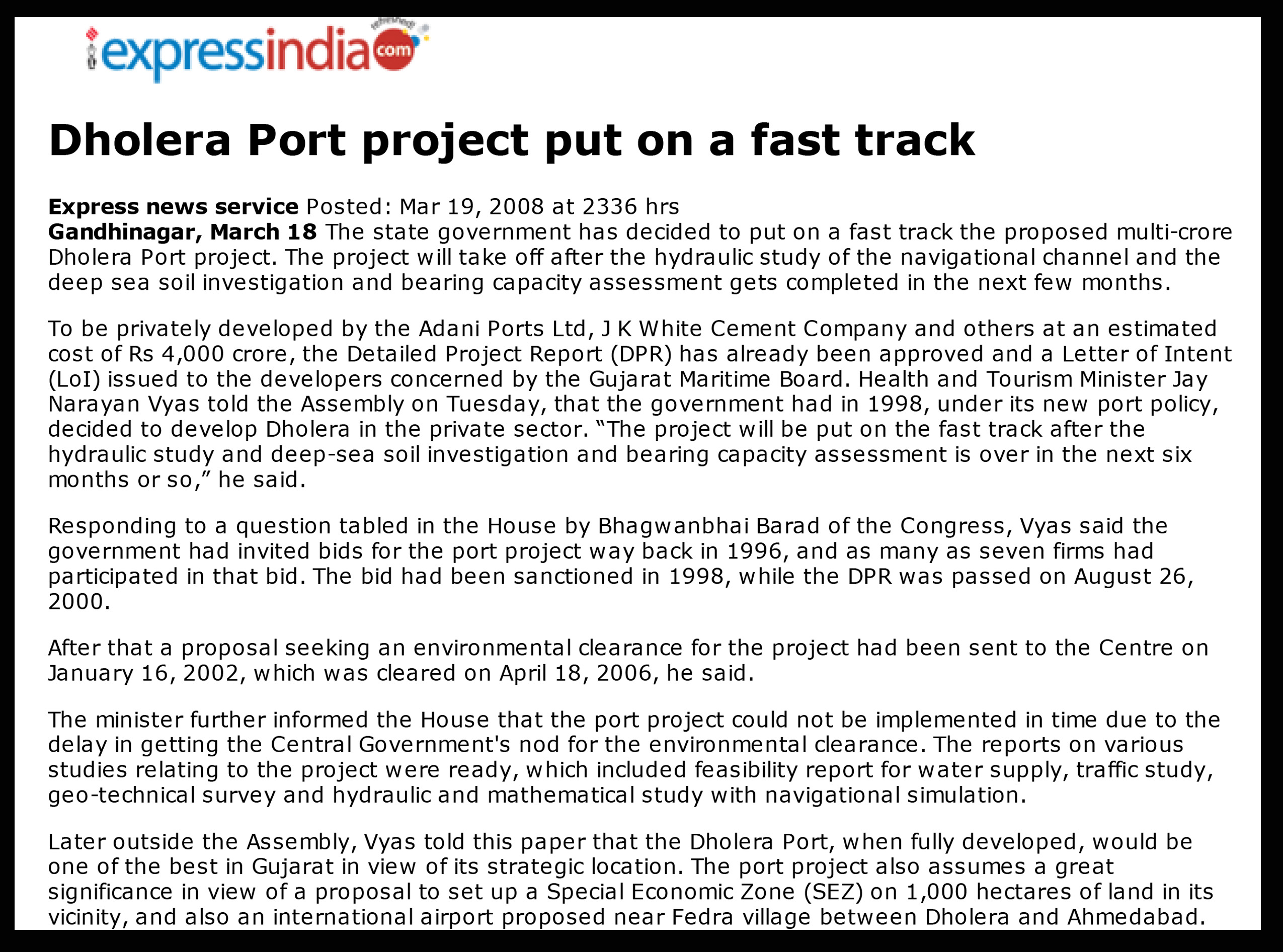 CENTRAL & STATE GOVT. PUT DHOLERA PORT PROJECT ON A FAST TRACK, ALL CLEARANCES OBTAINED!
